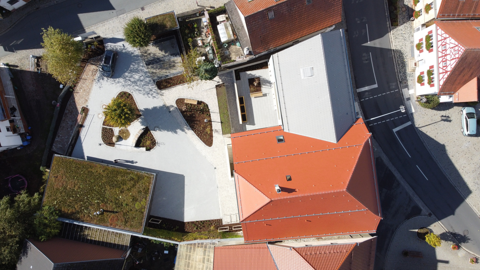 Umbau Freianlagen Marktplatz 5, Kasendorf - Luftaufnahme Neugestaltung, Bild: atelier freiraum