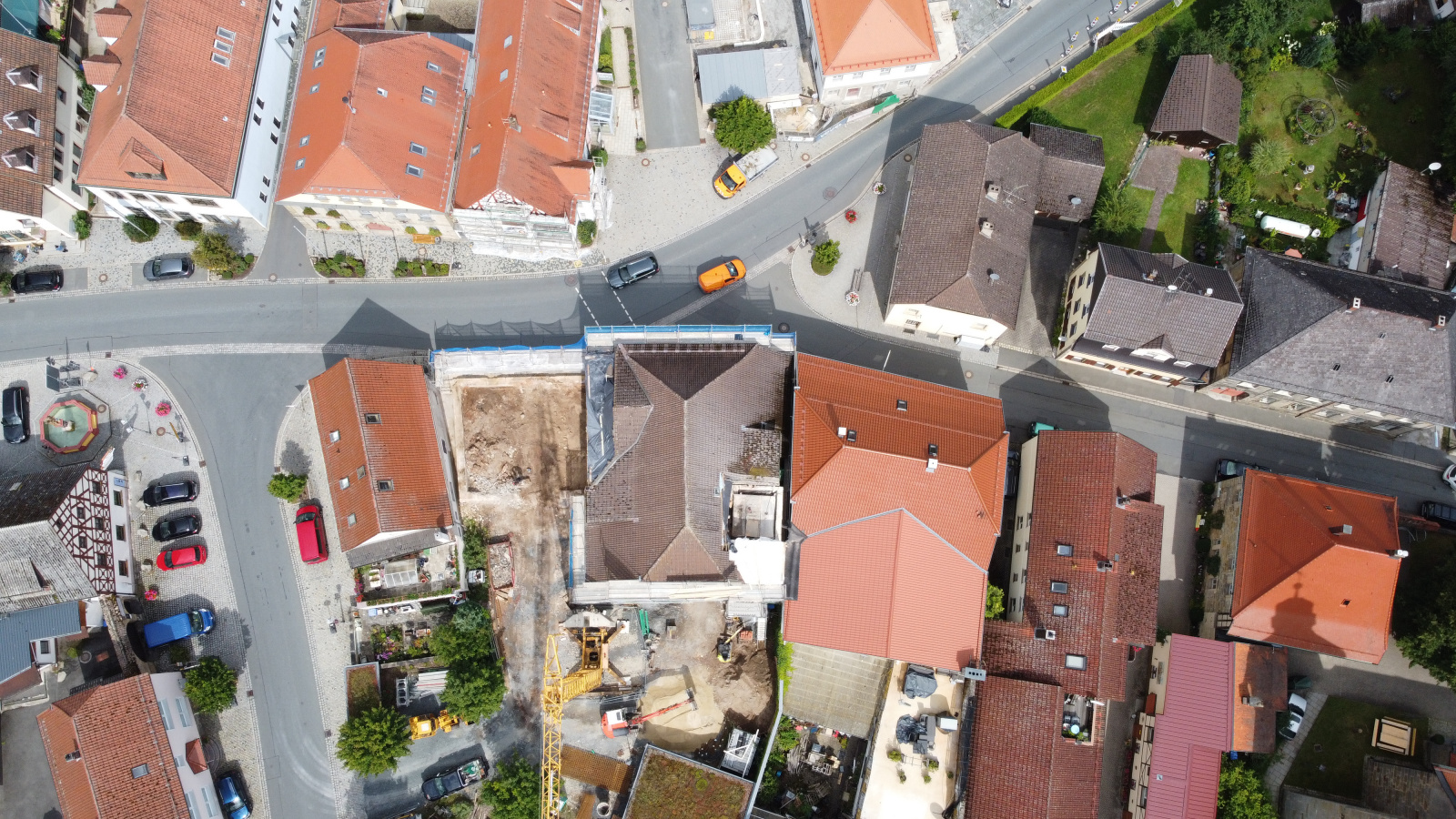 Umbau Freianlagen Marktplatz 5, Kasendorf - Luftaufnahme Bestand, Bild: atelier freiraum